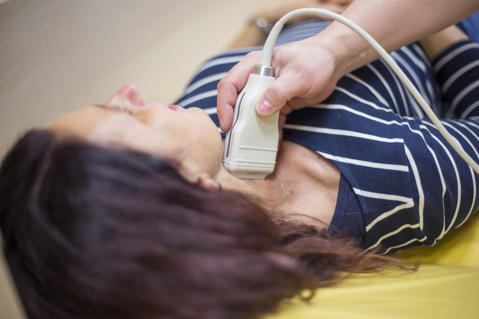Vyšetření štítné žlázy, krčních uzlin a měkkých tkání krku k odhalení strukturálních změn či zvětšení uzlin.